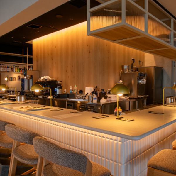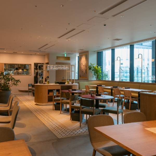 約30席のオープンエアーなテラス席を含め、計約160席以上ある開放的なカフェ&レストラン。店内はゆっくりとお食事を楽しんでいただけるメインフロアに気軽なバーカウンター、団体向けのスペースなど、用途に合わせた多様なフロア使いが可能。